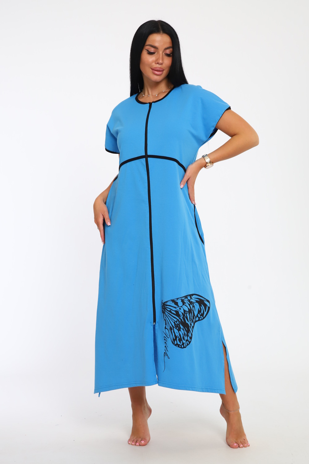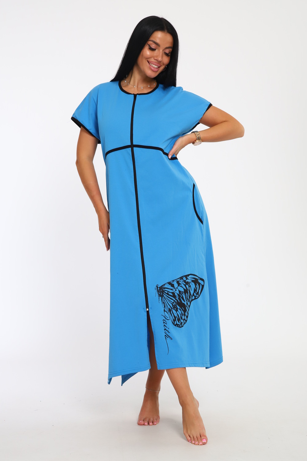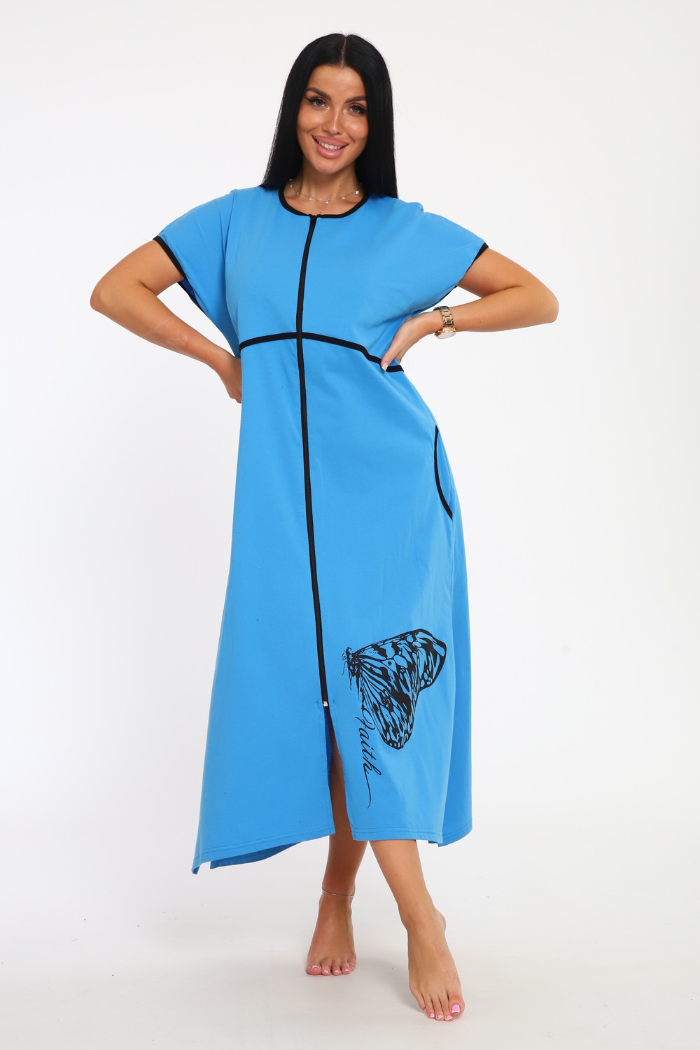Порадуйте себя новым халатом для дома на молнии с коротким рукавом! Любимый элемент гардероба, который поадрит комфорт и не обделит стилем! Представьте себе мягкость и легкость трикотажного хлопка, который не только дышащий, но и невероятно комфортный. Этот халат домашний женский создан специально для вас, чтобы сделать повседневные моменты дома более радостными. Его длина ниже колена и модель прямого силуэта обеспечат вам полную свободу движений, будь то утренний кофе или вечерние расслабляющие моменты перед сном. Яркий и красочный принт не оставит вас незамеченной даже дома. В боковые швы вшит пояс, который удобно подтягивает фигуру, добавляя дополнительное очарование и элегантность. Два удобных кармана – идеальное место для небольших мелочей, которые всегда должны быть под рукой. Наш халат подходит на каждый день, благодаря своей универсальности, этот халат будет в моде и в 2025 году! Подходит высоким и низким, ростом от 150 до 180 см. Больших размеров для полных женщин Независимо от вашего типа фигуры, этот халат обеспечит вам удобство и стиль, вне зависимости от времени года. С надписаями и рисунками, узорами, на любой вкус! Российское производство.