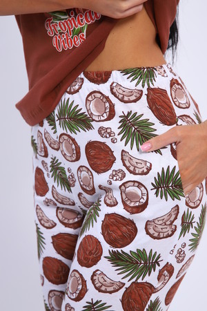 Топовая модель бренда - женская пижама из хлопка. Пижама женская с брюками свободного силуэта дарит свободу движений, пижама твое вдохновение. Почувствуйте себя стильной и привлекательной - носите комплект от Iren Renetti как домашний костюм. Мягкая резинка на поясе не врезается в кожу. В одежде для дома всё должно быть продумано до мелочей, ведь именно здесь так хочется расслабиться и не думать ни о чём с шортами женская пижама летняя. Стильная укороченная футболка женская освежает образ и будто намекает: женская пижама может быть нескучной. Сделайте себе приятный и полезный подарок или порадуйте обновкой близких - пижама на лето для женщин. Если вы отказываетесь выбирать в домашней одежде для дома между стилем и комфортом, присмотритесь к женской пижаме. Натуральная ткань и жизнерадостная расцветка - с этим нарядом вам не захочется расставаться.