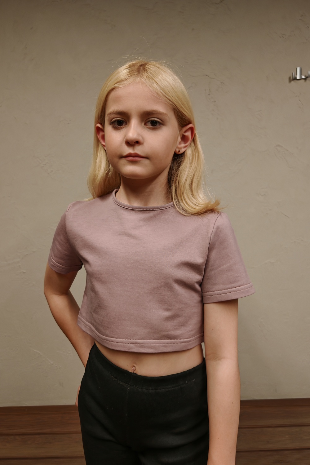 Однотонная детская и подростковая укороченная футболка сшита из качественного полотна, состав 95% хлопка, 5% эластана. Базовая однотонная футболка топ с коротким рукавом очень мягкая и удобная. Футболка идеальна для детского сада, прогулку во дворе, для поездки на море и как повседневный вариант для детей и подростков. Прослужит долго и никогда не станет лишней в гардеробе! Так же футболка кроп топ подойдет для рукоделия - сделать аппликацию или нанести принта. Футболка  не растягивается и не теряет форму, она отлично зарекомендовала себя при активном использовании и при занятиях спортом, фитнесом, танцами, гимнастикой, акробатикой, йогой, футболом, баскетболом, волейболом, физкультурой. При желании можно собрать фэмили лук с укороченной футболкой для взрослых - артикул 83908.