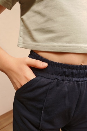 Однотонная детская и подростковая укороченная футболка сшита из качественного полотна, состав 95% хлопка, 5% эластана. Базовая однотонная футболка топ с коротким рукавом очень мягкая и удобная. Футболка идеальна для детского сада, прогулку во дворе, для поездки на море и как повседневный вариант для детей и подростков. Прослужит долго и никогда не станет лишней в гардеробе! Так же футболка кроп топ подойдет для рукоделия - сделать аппликацию или нанести принта. Футболка  не растягивается и не теряет форму, она отлично зарекомендовала себя при активном использовании и при занятиях спортом, фитнесом, танцами, гимнастикой, акробатикой, йогой, футболом, баскетболом, волейболом, физкультурой. При желании можно собрать фэмили лук с укороченной футболкой для взрослых - артикул 83908.
