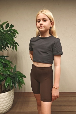 Однотонная детская и подростковая укороченная футболка сшита из качественного полотна, состав 95% хлопка, 5% эластана. Базовая однотонная футболка топ с коротким рукавом очень мягкая и удобная. Футболка идеальна для детского сада, прогулку во дворе, для поездки на море и как повседневный вариант для детей и подростков. Прослужит долго и никогда не станет лишней в гардеробе! Так же футболка кроп топ подойдет для рукоделия - сделать аппликацию или нанести принта. Футболка не растягивается и не теряет форму, она отлично зарекомендовала себя при активном использовании и при занятиях спортом, фитнесом, танцами, гимнастикой, акробатикой, йогой, футболом, баскетболом, волейболом, физкультурой. При желании можно собрать фэмили лук с укороченной футболкой для взрослых - артикул 83908.