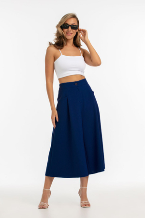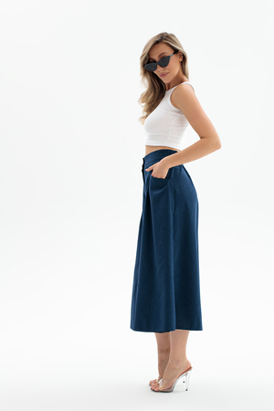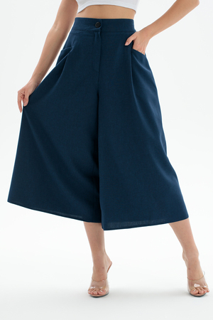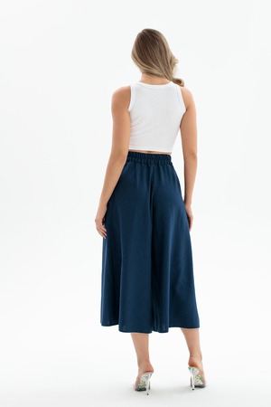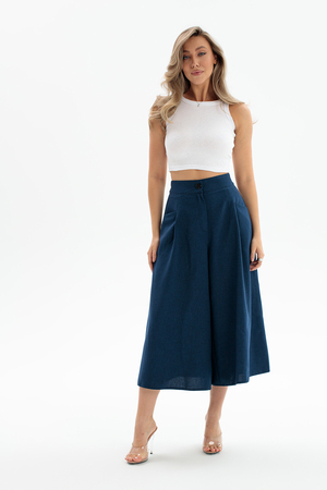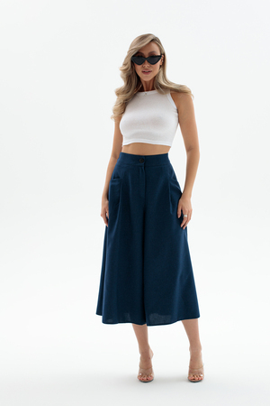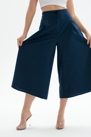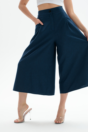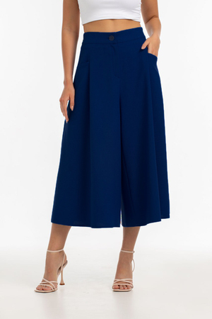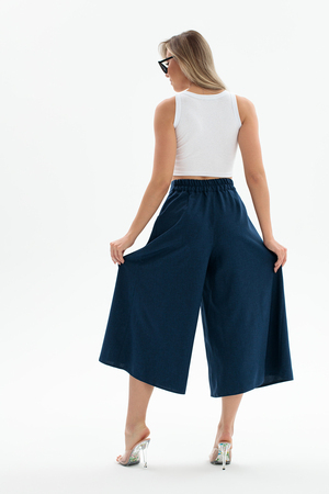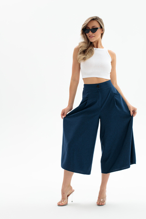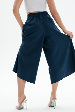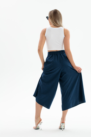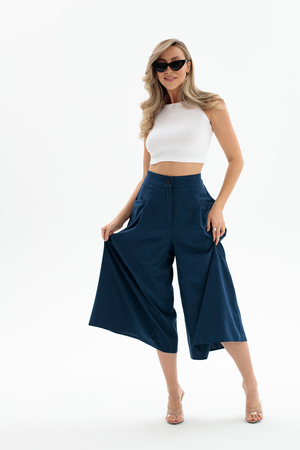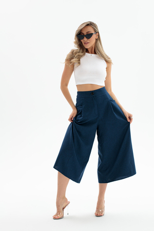 Укороченные широкие брюки - кюлоты с карманами и резинкой на талии подойдут женщинам любой комплекции и возраста. Комбинируя с различным верхом и обувью можно кардинально менять образ от строгого делового до расслаблено неформального.