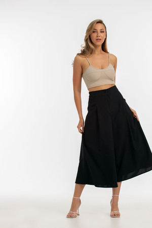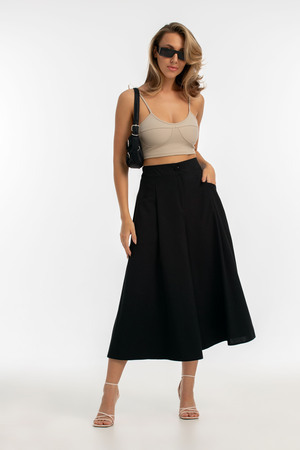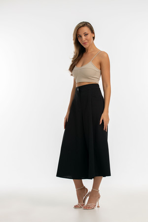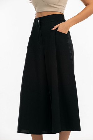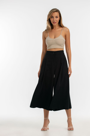Укороченные широкие брюки - кюлоты с карманами и резинкой на талии подойдут женщинам любой комплекции и возраста. Комбинируя с различным верхом и обувью можно кардинально менять образ от строгого делового до расслаблено неформального.