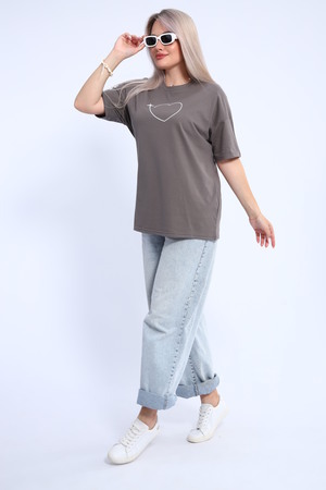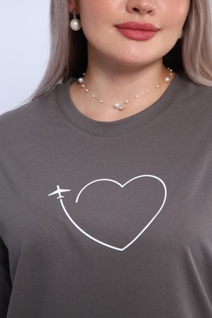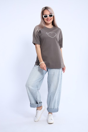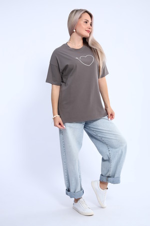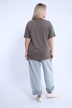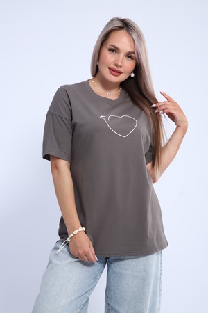 Футболка для женщин прямого силуэта, длиной до середины бедер. Рукав втачной, короткий. Горловина округлой формы. Полочка футболки украшена принтом.