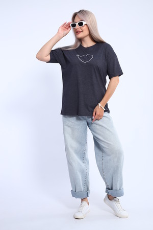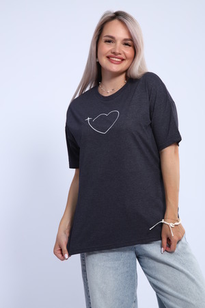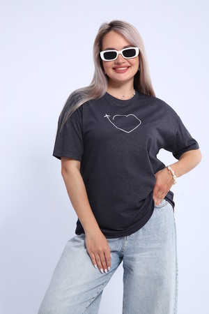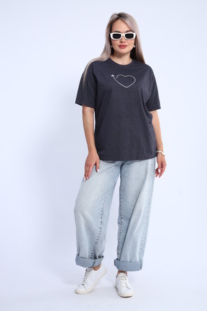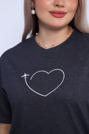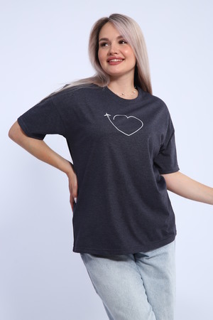 Футболка для женщин прямого силуэта, длиной до середины бедер. Рукав втачной, короткий. Горловина округлой формы. Полочка футболки украшена принтом.