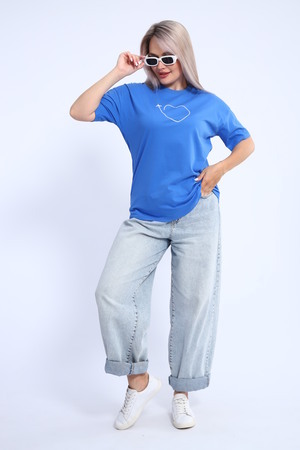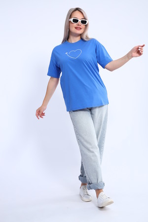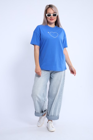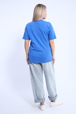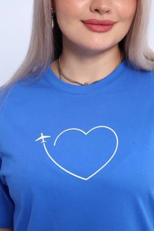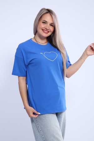 Футболка для женщин прямого силуэта, длиной до середины бедер. Рукав втачной, короткий. Горловина округлой формы. Полочка футболки украшена принтом.