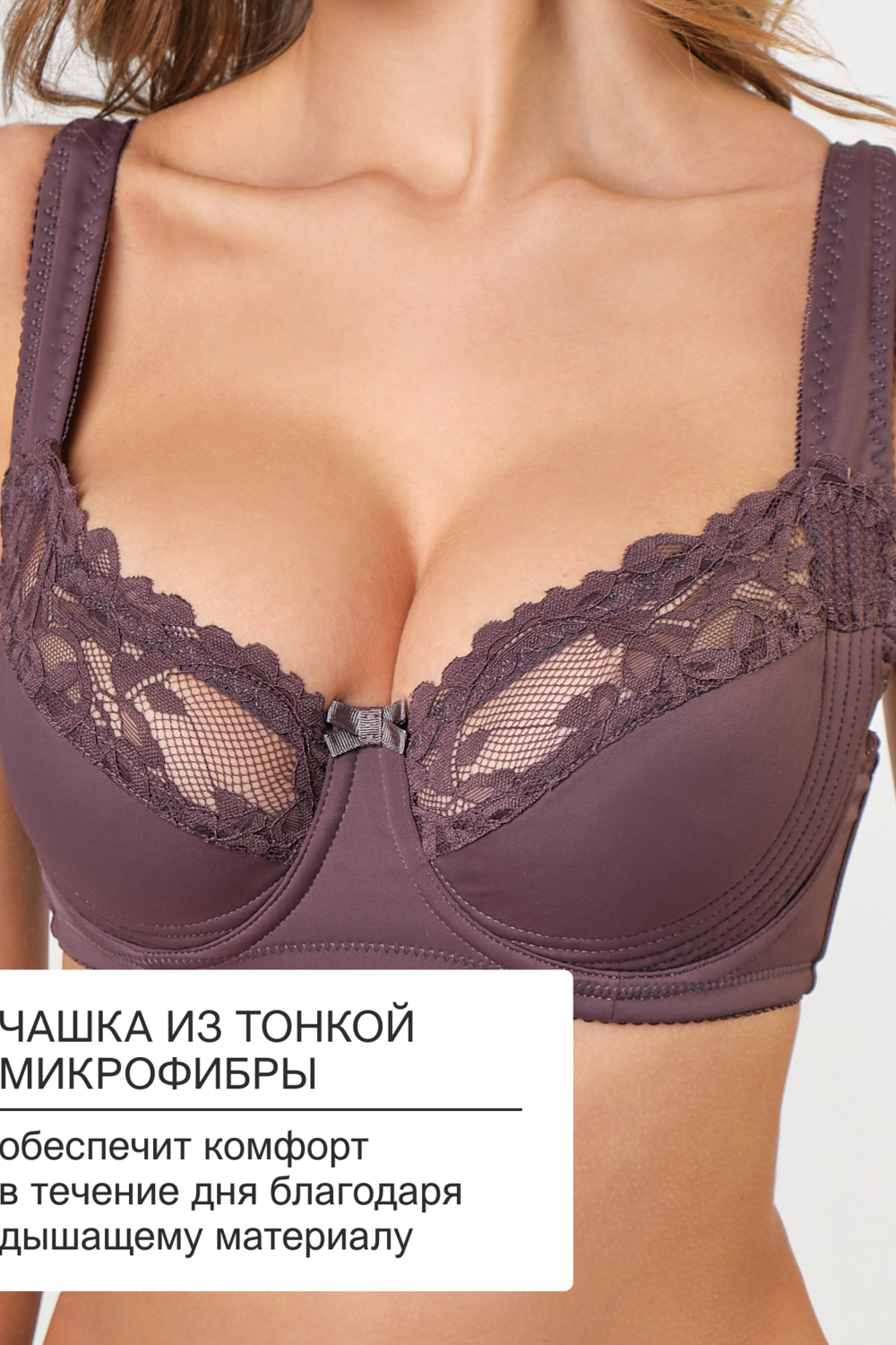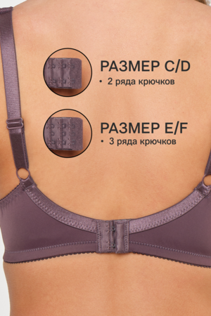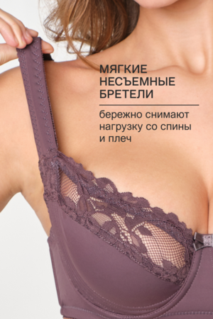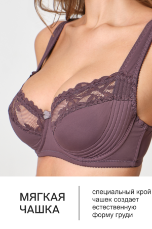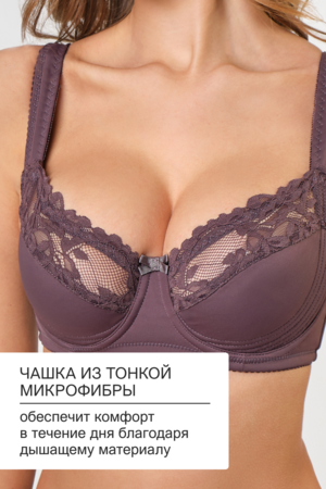 Бюстгальтер создан для поддержки груди больших размеров. Модель оснащена косточками, которые фиксируют форму, и регулируемой спинкой для точной настройки по фигуре. Чаши из дышащего материала с декоративными элементами из кружева обеспечивают комфорт в течение дня.