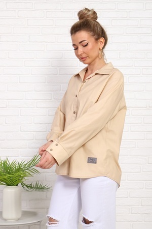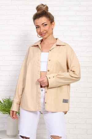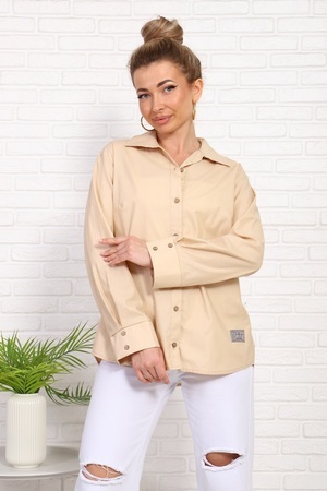 Сатиновая женская рубашка свободного кроя, длинный рукав с трендовым "пижамным" манжетом. Комфорт и стиль сатина высокого качества (100% хлопок). На спинке встречная складка. Свободный воротник, без фиксации на пуговицу. Кокосовые пуговицы на планке и манжетах.