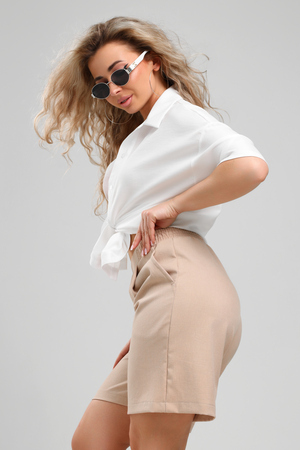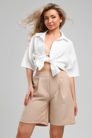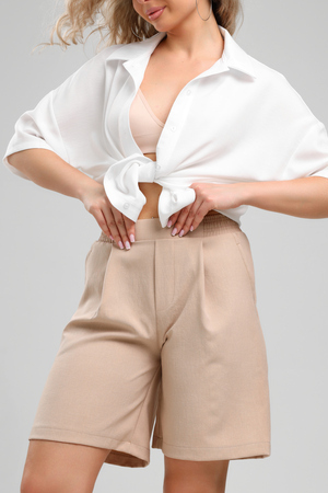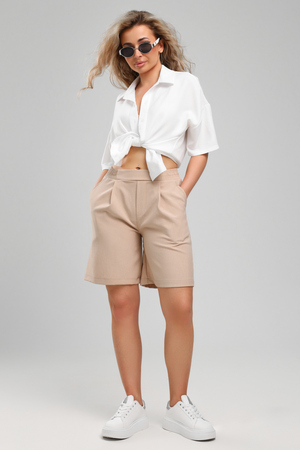 Льняные шорты – мастхэв базового женского гардероба. Модель выполнена из качественной ткани . Материал прочный, приятный на ощупь, хорошо струится и дышит. Изделие представлено в классических модных цветах. Широкий крой со складками и высокой талией создаёт красивый силуэт и обеспечивает удобную посадку, на любой тип фигуры. Пояс выполнен на специализированной поясной машине, что добавляет изделию качество на долгое время и эстетичность. На шортах имеются боковые карманы с усиленными закрепками на закрепочной машине. На модели представлен 46 размер - фигура соответствует параметрам размера. УХОД ЗА ИЗДЕЛИЕМ: бережная стирка при максимальной температуре 30ºС, не отбеливать, машинная сушка запрещена, глажение при 110ºС, профессиональная сухая чистка, стирать вывернутым наизнанку, глажение с использованием специальной сетки, стирать с изделиями похожих цветов . Шорты такого плана идеально впишутся в городской стиль, элегантность и комфорт, женственные силуэты и мягкие линии, расслабленные, нарочито небрежные образы, стильные и комфортные. Широкие шорты со складками – модная одежда для женщин на любой случай жизни. Подойдут для стильных повседневных луков, офисных аутфитов, нарядных вечерних образов и прогулок.