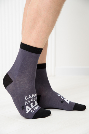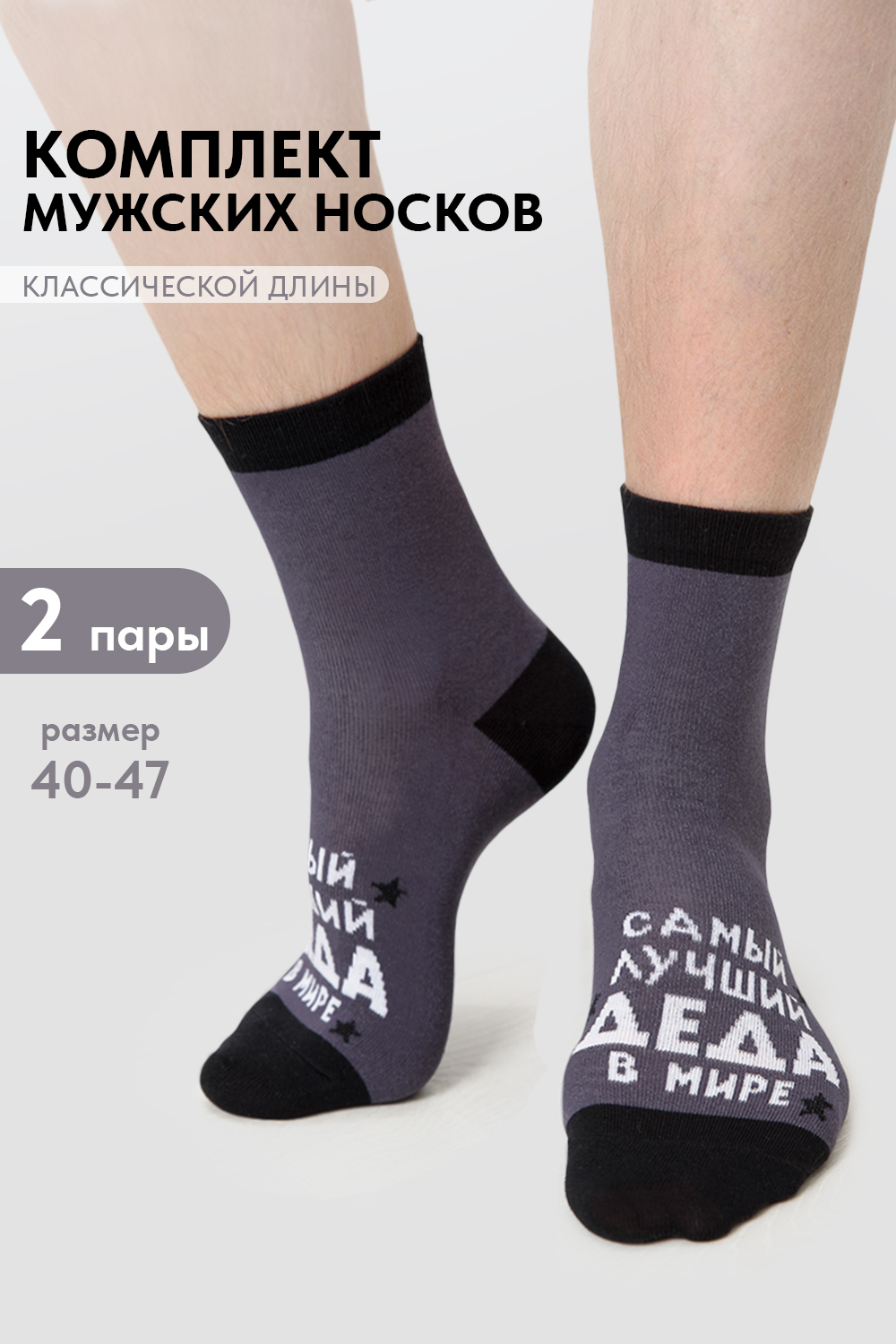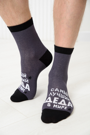 Мужские носки, комплект 2 пары. Мысок и пятка носка выполнены из другого цвета. На верхней части носка надпись "Лучший деда в мире".