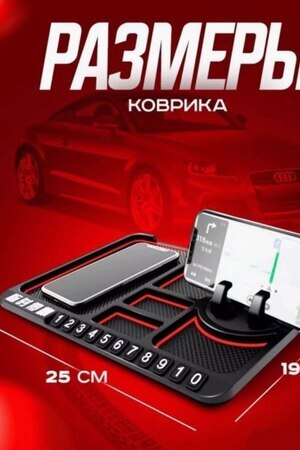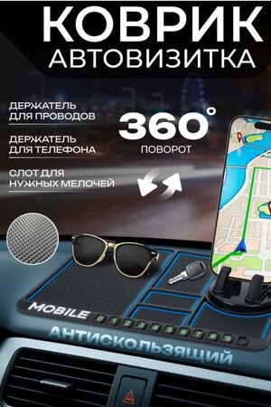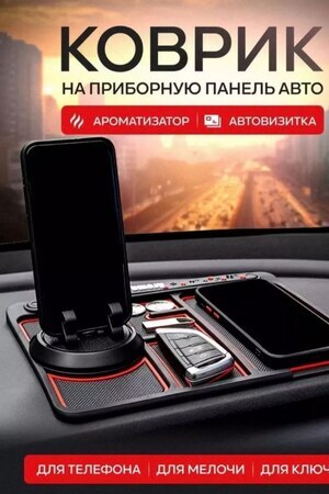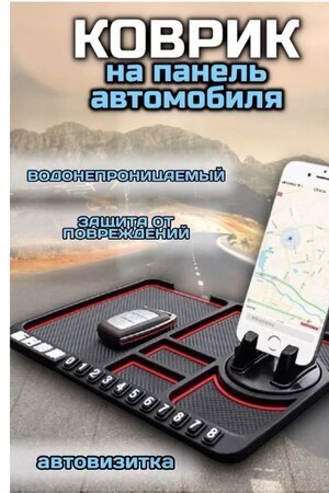 Коврик противоскользящий на торпеду является гибким, он изготовлен из экологически чистой и безопасной силиконовой резины, не оставляющей следы на панели, он не деформируется от солнечных лучей. Забудьте о беспорядке на приборной панели! С этим уникальным противоскользящим ковриком вы наконец-то сможете организовать все необходимое под рукой. Универсальный держатель телефона на 360 градусов: Поворачивайте телефон в любое удобное положение, как горизонтально, так и вертикально, для удобного просмотра видео, навигации или общения. Встроенная автовизитница. Противоскользящий материал:Коврик надежно фиксируется на торпеде, не требуя скотча, магнитов или прищепок. Высококачественный ПВХ:Обеспечивает долговечность и устойчивость к износу. Компактный размер и эргономичный дизайн: Коврик не занимает много места и идеально вписывается в салон автомобиля. Многофункциональность: Помимо телефона, на коврик можно разместить ключи, очки, наушники, антирадар и другие мелочи. Универсальность:Подходит для всех типов и марок автомобилей. Прочный и долговечный: Выдерживает воздействие солнечных лучей и не теряет своих свойств со временем. Этот коврик - идеальный выбор для:Автолюбителей, ценящих порядок и комфорт:Организация вещей на панели становится проще и удобнее.