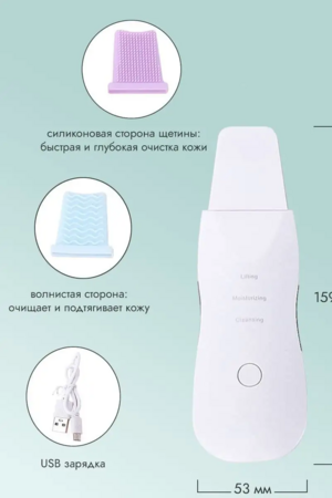 Ультразвуковой очиститель лица - ваш карманный косметолог.Любая женщина, уделяющая внимание уходу за собой, знает, как важно бережно очищать кожу и поры от ежедневных загрязнений, излишков кожного жира и ороговевшей кожи. С этими задачами идеально спрвится аппарат для ультразвуковой чистки и лифтинга.Он сделает вашу кожу подтянутой и чистой каждый день, глубоко очищая поры и оказывая подтягивающий лифтинг-эффект.Забудьте о шрамах и боли, аллергии воспалении. Вам больше не нужно будет "давить прыщи" и тратиться на косметолога. Ультразвуковой аппарат- удалит старые клетки кожи- выровнит поверхность и бережно очистит- удалит грязь и угри из пор- в сочетании с соответствующими косметическими средствами подтянет и оздоровит кожу