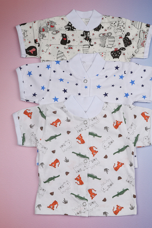 Комплект кофточек для малышей с коротким рукавом и разнообразной расцветкой -это отличный набор для выписку. Кофточки для новорожденных на кнопках изготовленных из 100 % хлопка. Одежда для новорожденных младенцев высокого качества, ткань мягкая и нежная. Удобные и практичные кофты для малышей свободного кроя, не сковывают движения и предназначены для повседневной носки. Эти детские распашонки-кофточки из мягкого трикотажа подойдут как для девочек, так и для мальчиков. Веселые расцветки позволяют легко комбинировать их с другой одеждой. Особенностью модели является долгая эксплуатация, которая выдержит множество стирок и ежедневное использование, благодаря этому материал отлично сохраняет изначальную форму, ткань не линяет и не выцветает. Нейтральные расцветки подойду как для мальчика, так и для девочки. В упаковке 3 шт. кофточек для детей разных цветов одного размера. Распашонки для новорожденных - идеальная одежда для первого гардероба малыша.