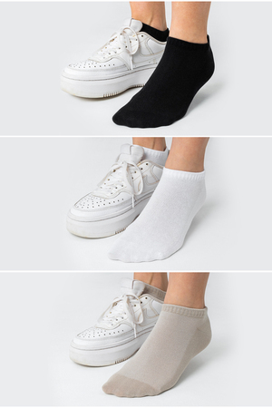 Набор женских носков. В комплекте 3 пары одного цвета или комплект где собраны все три цвета. Летняя модель с сеткой по верхней стороне. Состав ткани: 75 % х/б, 20% спандекс, 5% п/а.