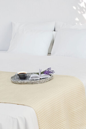 Плед вафельный 1,5 спальный 140х200 см однотонный хлопковый - универсальный элемент постельного белья для взрослых и детей с функциями легкого летнего одеяла, вафельной простыни, мягкого пледа, пляжного или банного покрывала. Плотность вафли - 320 г/м2. Отлично впитывает влагу, свободно пропускает воздух, согревает и сохраняет естественный режим терморегуляции, не вызывает аллергии и раздражения кожи даже у ребенка, обладает мягким массажным эффектом. Такой удобный вафельный плед согреет прохладной ночью, при этом под ним не жарко. Стильное и элегантное вафельное покрывало из вафли с крупными фактурными ячейками будет долгие годы украшать вашу спальню и делать каждое утро добрым.
