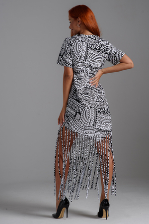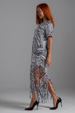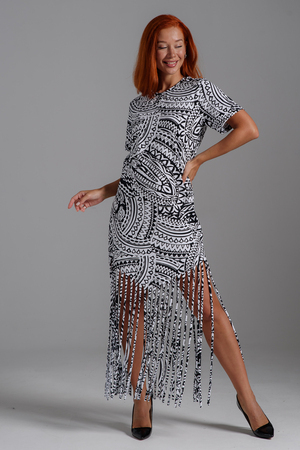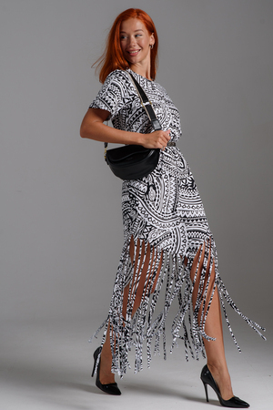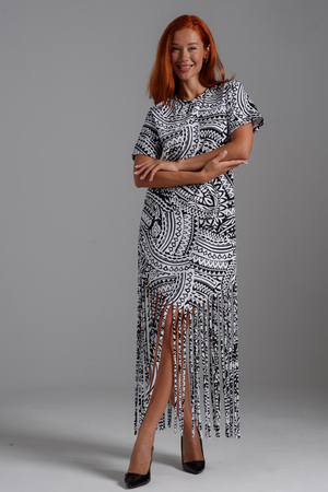 Покупатель на Ozon10.10.2025 в 17:25Понравилось платье, на 167см, бахрома достаёт до косточки на ноге, мой размер 60, почти в обтяжку