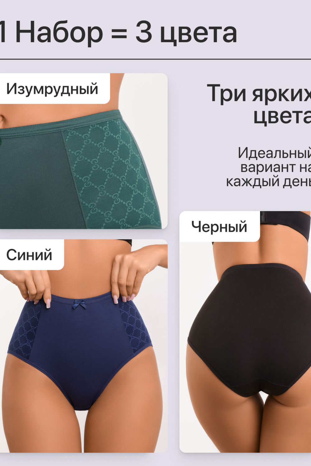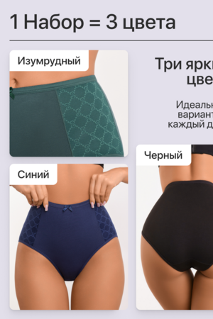 Набор трусов 3 шт. хлопковые высокие. Это превосходный выбор для девушек, которые ценят комфорт и элегантность в одежде. Изготовленные из мягкой и прочной ткани, они идеально подходят для женщин любых форм, обеспечивая идеальную посадку и поддержку. Благодаря удобному крою и эластичной резинке в поясе, эти трусы обеспечивают идеальную посадку и не натирают кожу.