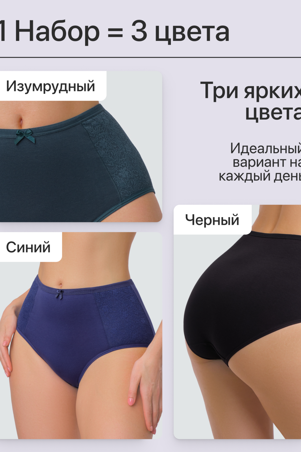 Набор трусов 3 шт. хлопковые высокие. Это превосходный выбор для девушек, которые ценят комфорт и элегантность в одежде. Изготовленные из мягкой и прочной ткани, они идеально подходят для женщин любых форм, обеспечивая идеальную посадку и поддержку. Благодаря удобному крою и эластичной резинке в поясе, эти трусы обеспечивают идеальную посадку и не натирают кожу.