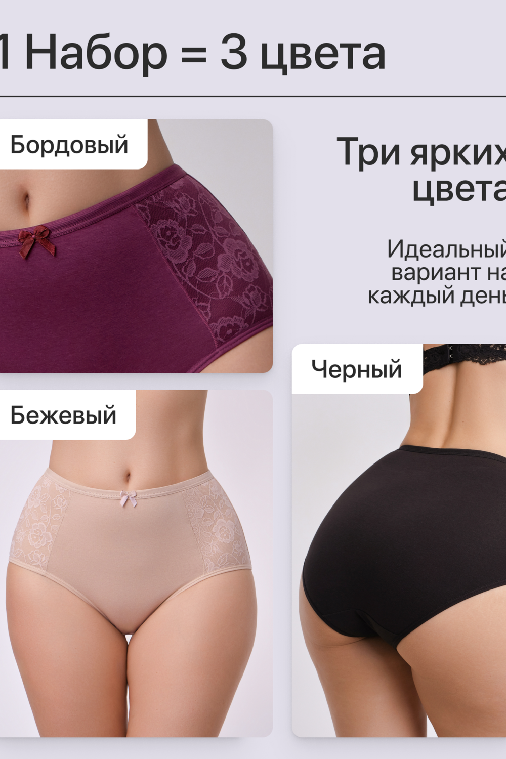 Трусы хлопковые. Набор 3 шт. Идеальны для ежедневного использования. Удобные и практичные.