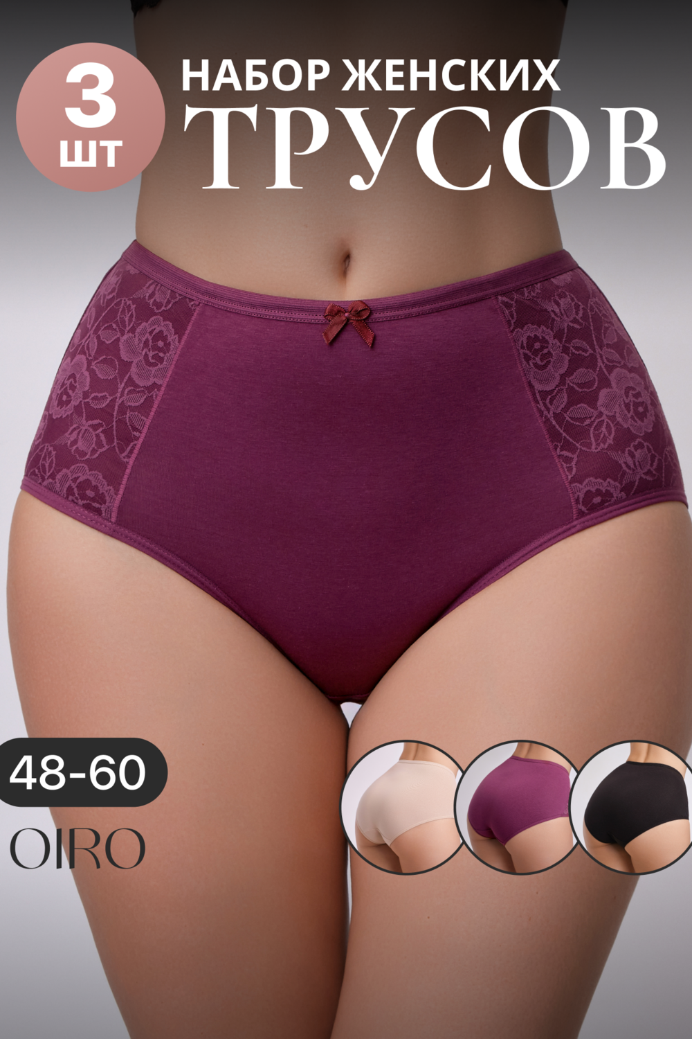 Модель: Набор трусов OIRO 3904 хлопковые с цветочным узором 3 шт