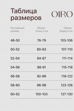 Таблица размеров и веса