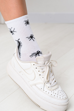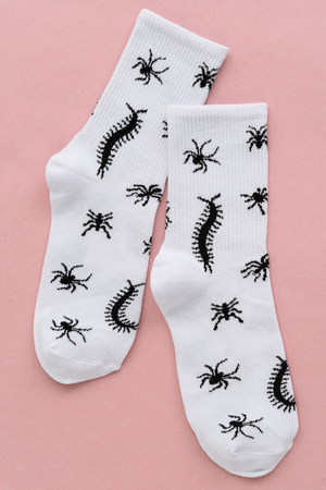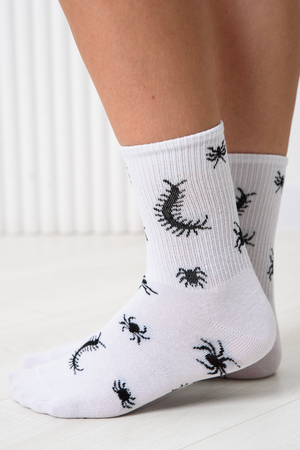Комплект носков с резинкой по всей верхней части. По всему носку изображение насекомых. В комплекте 2 пары.