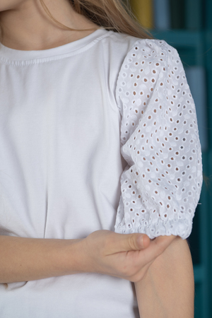 Элегантная школьная блузка для девочек с ажурными рукавами – стильное сочетание классики и нежности. Натуральный хлопок обеспечивает комфорт, а воздушные рукава добавляют образу изящности.