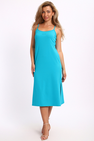 Летний сарафан облегающего силуэта на регулируемых бретелях. Комфортная длина до середины икры, разрезы по боковым швам, на спине рельефный шов подчеркивающий утонченность образа. Изделие выполнено из хлопкового волокна высокого качества с добавлением лайкры, хорошо растягивается, благодаря чему идеально садится по фигуре. Ткань отлично подходит для жарких летних дней, она гигроскопична, обладает отличными дышащими свойствами. В этом сарафане вы будете чувствовать себя вне всяких ограничений, ведь он совершенно не сковывает движения! Модные яркие расцветки, лаконичный фасон, открытая зона декольте - всё это создаёт нежный и приятный образ. Ненавязчивый текстовый принт на груди выглядит стильно. Тонкие бретельки, регулируемые по длине, подчеркивают изящность и женственность. В этом наряде вы будете прекрасно смотреться на отдыхе и в повседневной жизни, он незаменим в отпуске и удобен в жару в городе, одевайте его на пляж или для прогулок в парке, комбинируйте с блузами и пиджаками.