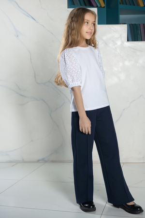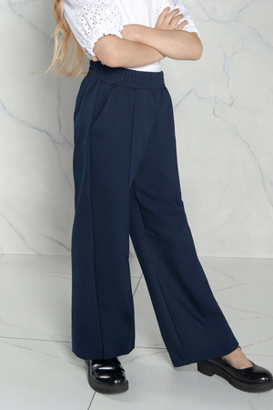 Стильные классические брюки для девочек – идеальный выбор для школы и торжественных мероприятий. Прямой крой, удобная посадка на резинке и мягкая, но плотная ткань обеспечивают комфорт на весь день.