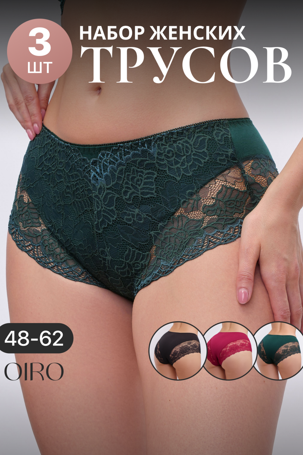 Набор трусов 802 OIRO кружевные хлопковые 3 шт.