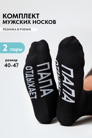 Мужские носки, комплект 2 пары. Широкая резинка по всей верхней части. Надпись на стопе "Папа отдыхает".