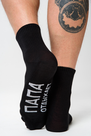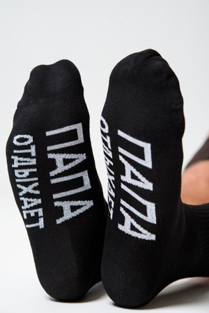 Мужские носки, комплект 3 пары. Широкая резинка по всей верхней части. Надпись на стопе "Папа отдыхает"