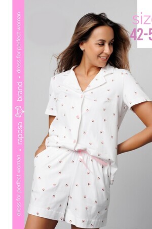 Представляем Вам очаровательную пижаму с шортами и рубашкой от Raposa, которая станет идеальным выбором для летних ночей! Эта милая пижама, выполненная из мягкого и дышащего хлопка с добавлением эластана, подарит Вам невероятный комфорт и свободу движений. Нежный принт с цветочками создает романтичный и эстетичный вид, а атласная лента на шортиках добавляет пикантности и стиля. Эта пижама женская – настоящая находка для девушки, которая ценит комфорт и красоту. Она идеально подходит для сна, отдыха дома и даже для утренней пробежки по саду. Благодаря своей универсальности, эта пижама белая в цветочек станет отличным подарком для подруги, сестры или мамы. Костюм домашний с шортами и рубашкой выполнена в больших размерах до 54 и 56 и подойдёт для полных женщин плюс сайз и беременных будущих мам. Шорты на резинке обеспечат идеальную посадку на любой фигуре, идеально будет смотреться на высоких и невысоких. Легкая и приятная к телу хлопковая ткань не мнется, что делает костюм пижама идеальной для путешествий и активного отдыха. В швах удобные карманы для мелочей, а короткие рукава рубашки не стесняют движений. Эта пижама трикотажная - настоящий символ летнего комфорта и стиля! Пижама комплект двойка станет изюминкой фотосессии для образа, как из пинтерест. Мы уверены, что Вы полюбите эту пижама набор за ее нежность, красоту и удобство.