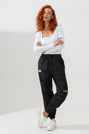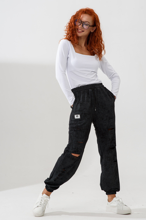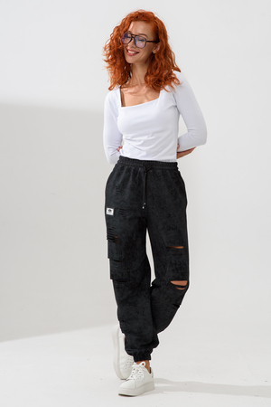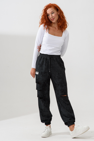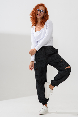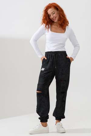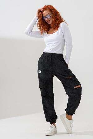 Стильные женские спортивные штаны с прорезями в уличном стиле. Штаны на резинке с комфортной посадкой созданы для ярких девушек, ценящих удобство и моду. Идеально подходят для прогулок, дома и активного отдыха. Легкие трикотажные джоггеры с карманами — тренд сезона. Рваные детали добавляют дерзости образу, а свободный крой гарантирует комфорт на каждый день. Багги, карго, бананы и слоучи — все, что нужно для модного гардероба! Оверсайз штаны на резинке с манжетами идеально подойдут как для подростков, так и для женщин высокого и невысокого роста. Создай модный лук с хлопковыми кэжуал брюками. Необычные широкие дырявые джоггры с высокой талией подчеркнут твою индивидуальность. Выбери casual штаны с гранж акцентами для танцев или фитнеса — будь всегда на пике тренда. Стильная спортивка с прорезями для девушек отличный выбор для демисезона и весенних прогулок. Почувствуй свободу движения!