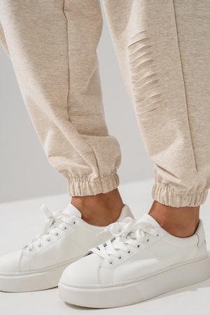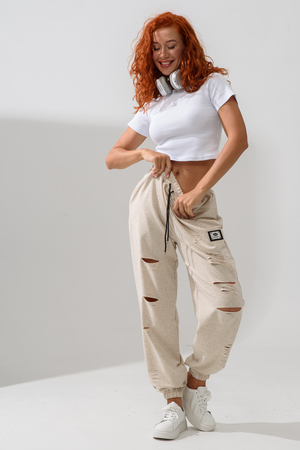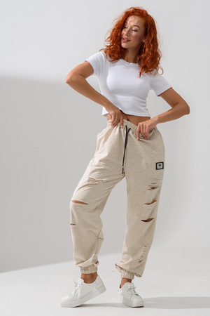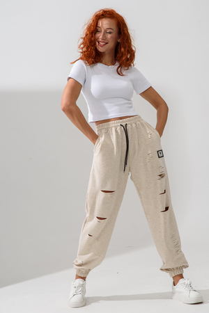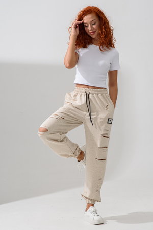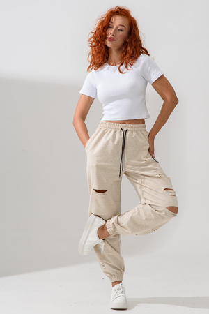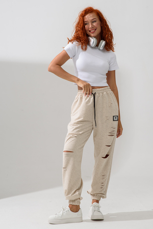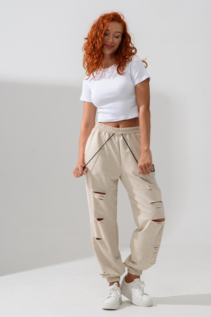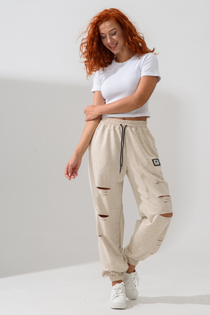 Стильные женские спортивные штаны с прорезями в уличном стиле. Штаны на резинке с комфортной посадкой созданы для ярких девушек, ценящих удобство и моду. Идеально подходят для прогулок, дома и активного отдыха. Легкие трикотажные джоггеры с карманами — тренд сезона. Рваные детали добавляют дерзости образу, а свободный крой гарантирует комфорт на каждый день. Багги, карго, бананы и слоучи — все, что нужно для модного гардероба! Оверсайз штаны на резинке с манжетами идеально подойдут как для подростков, так и для женщин высокого и невысокого роста. Создай модный лук с хлопковыми кэжуал брюками. Необычные широкие дырявые джоггры с высокой талией подчеркнут твою индивидуальность. Выбери casual штаны с гранж акцентами для танцев или фитнеса — будь всегда на пике тренда. Стильная спортивка с прорезями для девушек отличный выбор для демисезона и весенних прогулок. Почувствуй свободу движения!