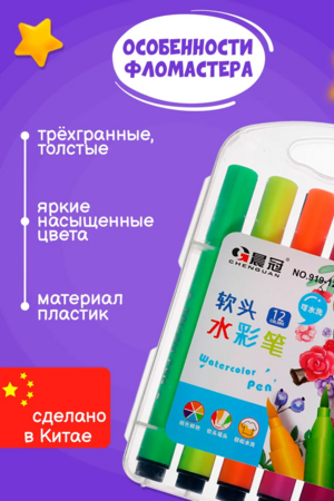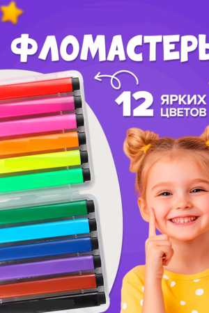 Фломастеры 12 цветов в пластиковом пенале, треугольные, толстые, вентилируемый колпачок. Фломастерами легко наполнять цветом картинки в раскраске и дать волю воображению и создать сочный рисунок, искрящийся красками. Детские фломастеры обладают яркими насыщенным цветами. У фломастера для рисования удобная толстая форма, легко держать в руке. Фломастеры изготовлены на водной основе, поэтому они безопасны, не токсичны, практически не имеют запаха и легко смываются с большинства материалов и кожи. Наконечник фломастера для творчества, устойчивый к продавливанию, не проваливается внутрь корпуса и не деформируется даже при сильном нажатии..
