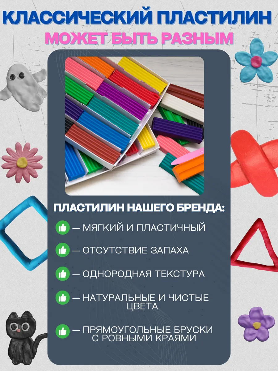 Наш классический пластилин специально создан для детей от трех лет, он легко разминается в руках ребенка, с ним просто создавать различные фантазийные фигурки. Наборы представлены в разных комплектациях, и идеально подойдут для школы и занятий в детском садике. Мягкий пластилин безопасен для детей и является лучшим выбором для развития воображения и фантазии. Наш пластилин не липнет, не крошится, эластичен, И самое главное не пачкает руки. Наборы для лепки позволяют детям раскрыть свою творческую натуру и создавать удивительные произведения, познавая мир. Каждый цвет обладает отличной пластичностью и легкостью в использовании, что позволяет ребенку легко лепить различные поделки. Цвета отлично смешиваются между собой и создают новые неповторимые оттенки.
