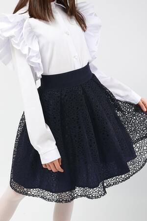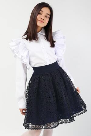 Юбка для девочки Соль&Перец. Эффектная юбка, с широким, эластичным поясом, сзади застёгивается на молнию золотистого цвета. Верхний слой - плотная сетка, с интересным плетением. Низ - лёгкий, атласный подклад. Прочный, износоустойчивый материал позволит надолго сохранить форму и привлекательный внешний вид изделия. Универсальный вариант как для школы, так и для торжественного мероприятия.