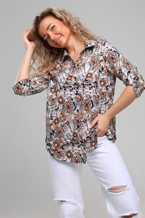 Женская стильная туника - рубашка выполнена из 100% хлопчатобумажного полотна. Новый дизайн и отличное качество делает изделие модным, легким и приятным на ощупь, не сковывает движения, поэтому отлично подойдет как для школы, дома и работы, так и для повседневной носки. Модель дополняет рубашечный воротник, паты и планка с расстёгивающимися пуговицами, делая её более комфортной. Женская свободная рубашка не сковывает движения, поэтому отлично подойдет будущим мамам, беременным женщинам и кормящим. Расстёгивающаяся планка сделает кормление малыша удобным и комфортным, а за счет качественного хлопкового трикотажа еще и безопасным и экологичным. Мы специально разработали рубашку для женщин большого размера. Большие размеры любят и подростки, которые предпочитают вещи оверсайз (oversize). Рубашка женская - это базовая вещь в гардеробе девушки или женщины, является идеальным вариантом для офиса, работы, школы и путешествий. Удлиненную рубашку можно носить дома и в качестве повседневной одежды.