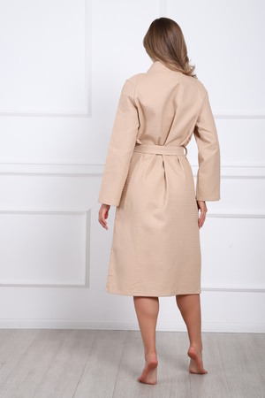 Халат женский вафельный выполнен из 100% хлопка. Плотность вафельного полотна - 240 гр/м2. Эта прочная плотная ткань обладает особой мягкостью благодаря своей структуре. Приятная к телу ткань быстро впитывает влагу, хорошо пропускает воздух, не оставляет лишних ворсинок и волосков на теле, не электризуется и не прилипает к телу. Впитывающие свойства ткани позволяют использовать вафельный халат как полотенце после душа или бани.