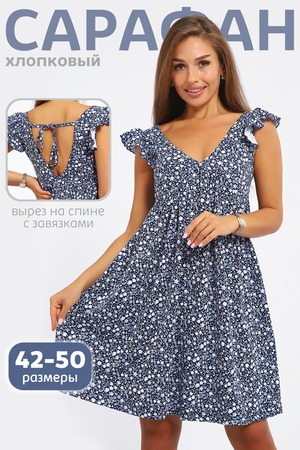 Маленький легкий сарафан из 100% хлопка, длиной чуть выше колен с небольшим рукавом - крылышком. Лиф отрезной, от груди сборка. V-образный вырез в виде мыса и по полочке, и по спинке. На спинке мыс соединяется тесьмой и завязывается на бант. Сарафан выполнен в романтическом стиле, прекрасно подойдет для прогулки, для пляжа, и конечно для свидания. Не забудьте взять сарафанчик в отпуск.