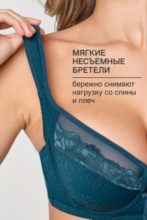 Бюстгальтер на косточках оснащен мягкими чашами, которые поддерживают и формируют грудь без использования пуш-ап. Это бюстье приятно к телу, обеспечивает максимальную воздухопроницаемость, комфорт в носке и не вызывает раздражения кожи. Дополнительные регулируемые бретели позволяют легко настроить его по индивидуальным параметрам.
