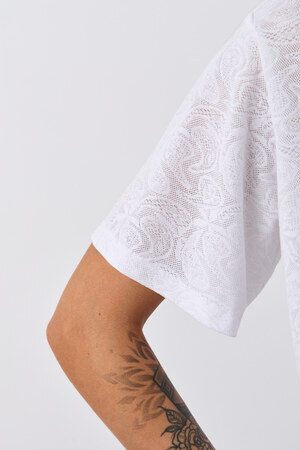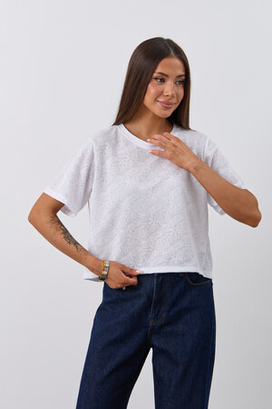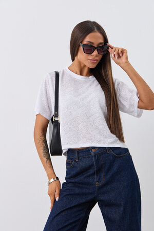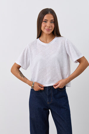 Мы являемся российским брендом «EMOTION DAY», предлагающим качественную, стильную, уникальную и неповторимую одежду. Женская футболка на лето из ажурного трикотажа станет идеальным выбором для повседневного и нарядного образа. Футболка женская укороченная выполнена из Premium (Премиум класса) качественной ткани, содержащей 95% хлопок, 5% полиэстер, благодаря чему белая прозрачная футболка женская обеспечивает комфорт и легкость в жаркую погоду, поэтому будет отличной женской футболкой летней. Удобная посадка и стильный минималистичный дизайн кружевной футболки женской позволяет создать модный образ в стиле кэжуал. Эта стильная футболка для женщин идеально подходит для тех, кто любит комфорт и трендовый внешний вид. Белая основа в сочетании с ажурным рисунком делает наши женские летние футболки одновременно базовой футболкой для женщин и необычной. Отличный выбор для любителей футболка Pinterest (пинтерест) -образов и поклонников эстетики футболка y2k. Универсальная женская футболка белого цвета позволяет легко комбинировать ее с различными вещами. Базовая футболка женская универсальна: подойдет, как футболка подростковая, девушке, женщине в качестве подарка в день рождения или другой праздник. Однотонный дизайн делает ее отличным вариантом для работы, офисных встреч, отдыха или пляжа. Обратите внимание на свободный крой и короткий рукав — это делает ее не только модной must-have, но и удобной оверсайз футболкой. Свободная футболка сочетается с джинсами, шортами, юбкой, создавая разнообразные образы - от классического футболка под пиджак до необычного. Ее легкая трикотажная ткань долговечна и сохраняет форму после стирки. Если хотите, чтобы футболка была оversize, то берите на пару размеров больше