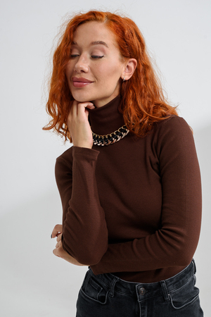 Покупатель на Ozon06.10.2025 в 19:52Цвет красивый, но очень сильно маломерит, ог108 ношу 54 размер, водолазку взяла 56 размер и она плотно облегает, оставила может растянется
