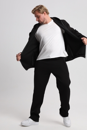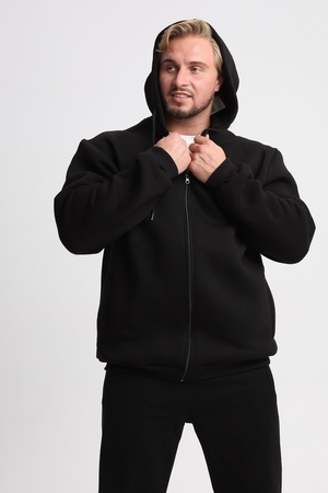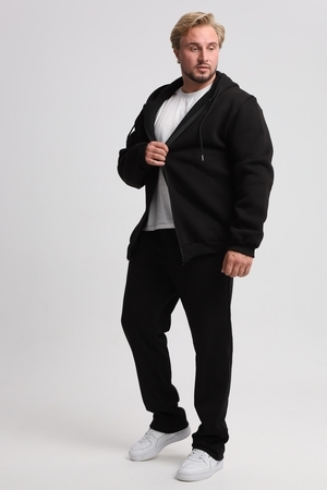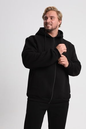 Эта мужская черная толстовка на молнии — идеальный выбор для тех, кто ценит комфорт, универсальность и современный дизайн. Изготовлена из высококачественного смесового материала (хлопок с добавлением полиэстера), она обеспечивает отличную воздухопроницаемость, сохраняет тепло в прохладную погоду и быстро сохнет после интенсивных тренировок или прогулок.