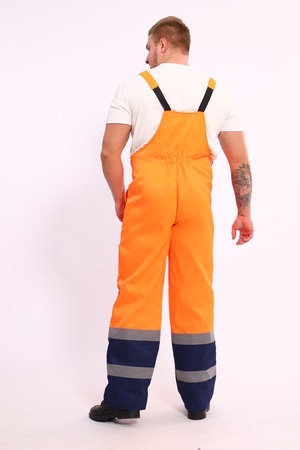 Куртка полукомбинезон. Размерный ряд: 44-64 (полноразмерная сетка). Подойдет дорожным рабочим, сотрудникам ЖКХ, строителям, работникам коммунальных служб.