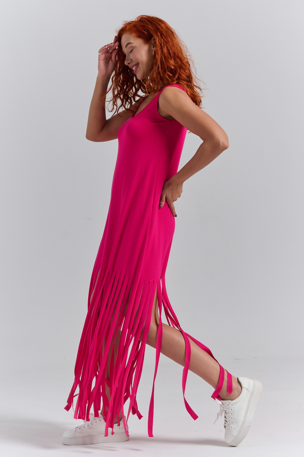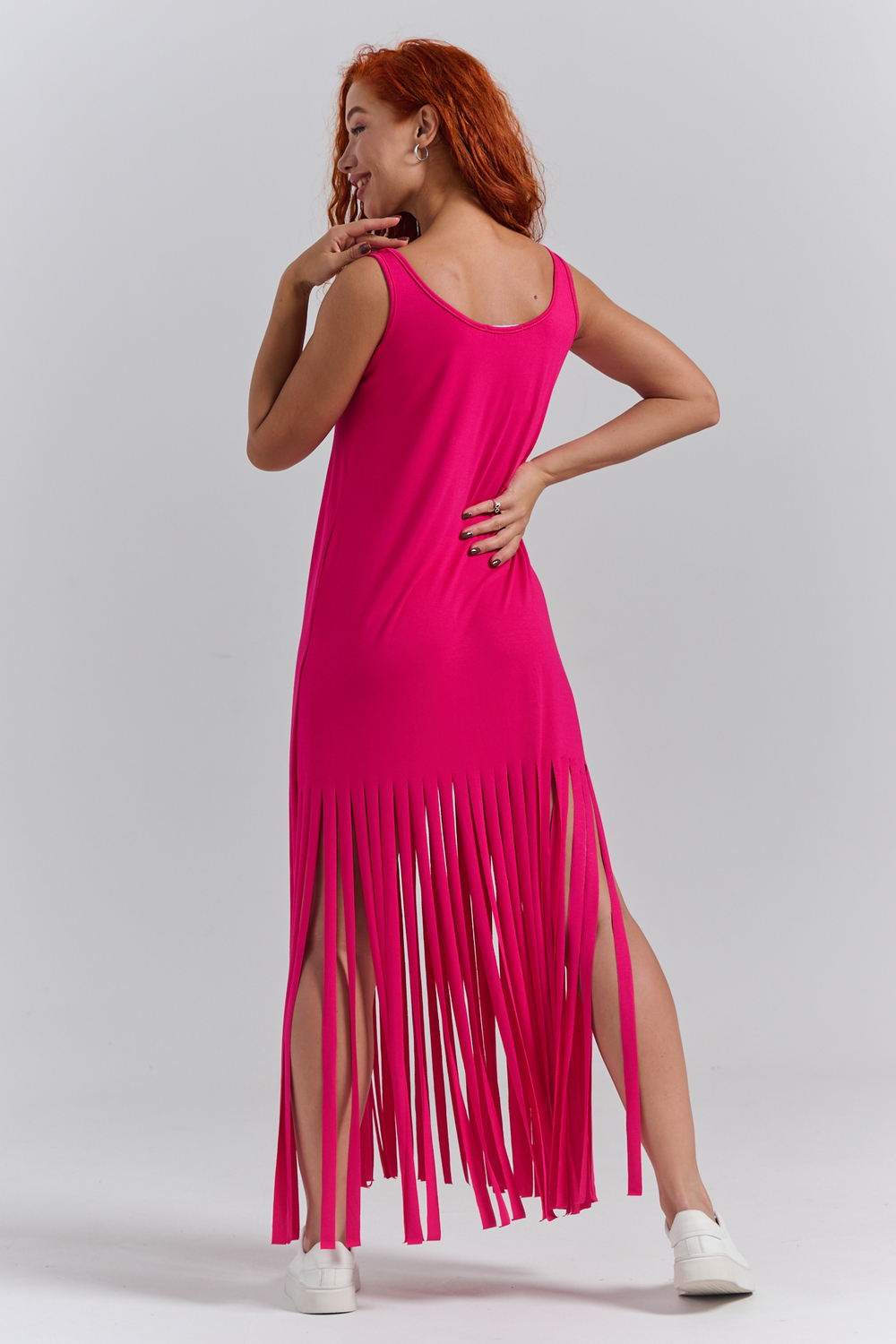 Платье с бахромой из струящейся вискозы. Лёгкое, летящее, манящее. Дарит невероятное ощущение женственности! Собираетесь на курорт? Благодаря легкости материала - отлично подойдёт как сарафан, летнее платье в отпуск. Платье с бахромой очень комфортно в жару. Это платье надо брать! Отлично впишется в Ваш гардероб! Прекрасно садится на фигуру!