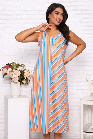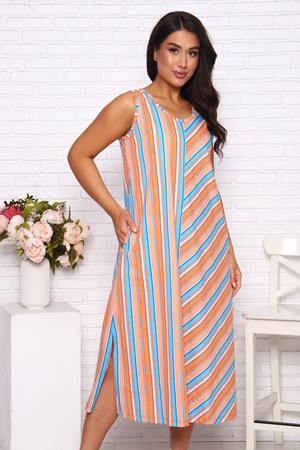 Сарафан женский выполнен из трикотажного полотна кулирка. Сарафан свободного силуэта, по низу изделия выполнены разрезы. Горловина и пройма окантованы.