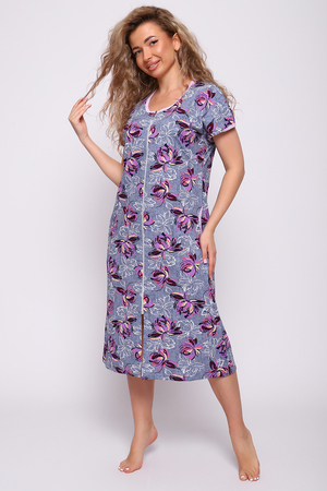 Халат женский из хлопковой кулирки на молнии. рукав - спущенное плечо, два боковых кармана.