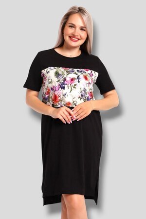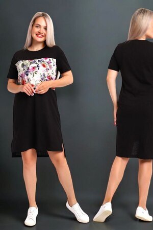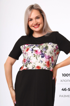 Эта стильная туника — идеальный выбор для тех, кто ценит комфорт и модные акценты. Выполненная из 100% хлопка, она дарит мягкость и приятные ощущения на теле. Элегантный чёрный цвет в сочетании с эффектной цветочной полосой на груди придаёт образу яркости и оригинальности.